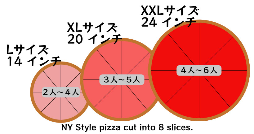 ニューヨークピザ Sizes: L 14inch, XL 20 inch and XXL 24 inch.